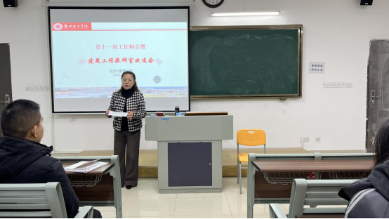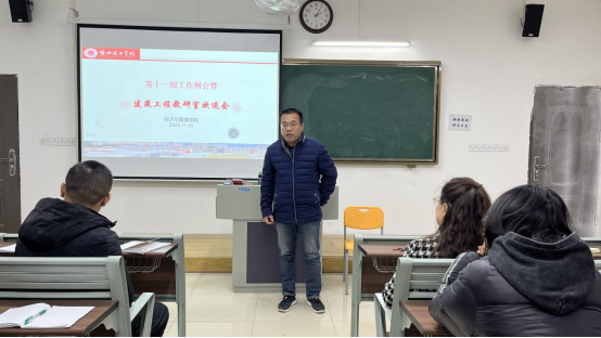 20231115日,经济与管理学院在一教219召开第十一周教学工作会议暨建筑工程教研室欢送会。会议由吴玲院长主持,经济管理学院全体教师参加。