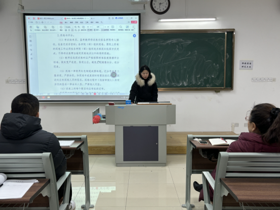 会议伊始,院长助理张珊进行工作布置,其中包括试卷批阅、存档及规范装订工作,要求严格执行标准,审慎评阅,确保公正;并规范装订程序,提高试卷质量。