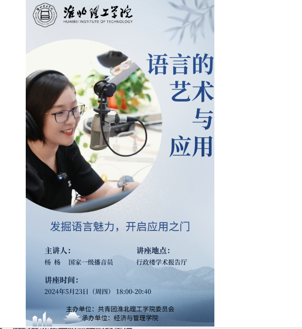 为进一步提升广大师生的语言表达能力与沟通技巧,切实感受到语言艺术的魅力。由共青团淮北理工学院委员会主办、bat365在线中国官网登录入口承办的“语言的艺术与应用”专题讲座,旨在通过专家经验的分享,为广大师生提供宝贵的指导和启示,提高师生的语言艺术和锤炼自身修养。现将具体活动通知如下: