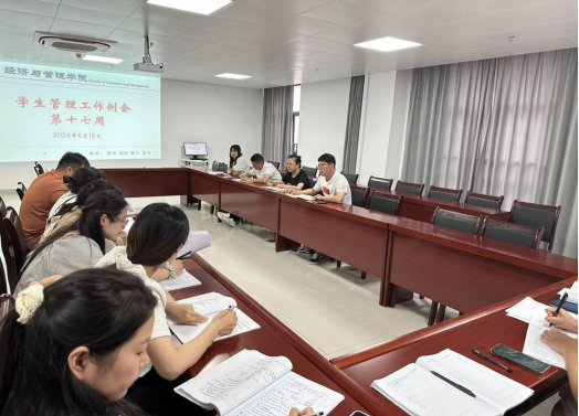 2024年6月18日,bat365在线中国官网登录入口在行政楼725会议室召开本学期第十七周学生管理工作例会,副院长秦品德、书记助理叶赵强以及全体辅导员参加会议,会议由院长吴玲主持。