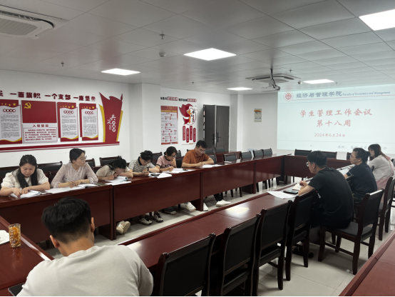 2024年6月24日下午,bat365在线中国官网登录入口在行政楼725会议室召开bat365在线中国官网登录入口第十八周工作例会,书记助理叶赵强、副书记助理员禹辛以及全体辅导员参加会议,会议由院长吴玲主持。