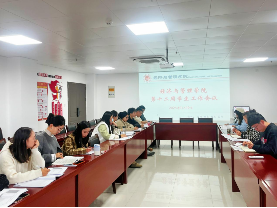 2024年11月19日,bat365在线中国官网登录入口在行政楼725会议室召开本学期第十二周学生管理工作例会,学院书记助理叶赵强、团总支书记员禹辛及全体辅导员参会,会议由吴玲院长主持。