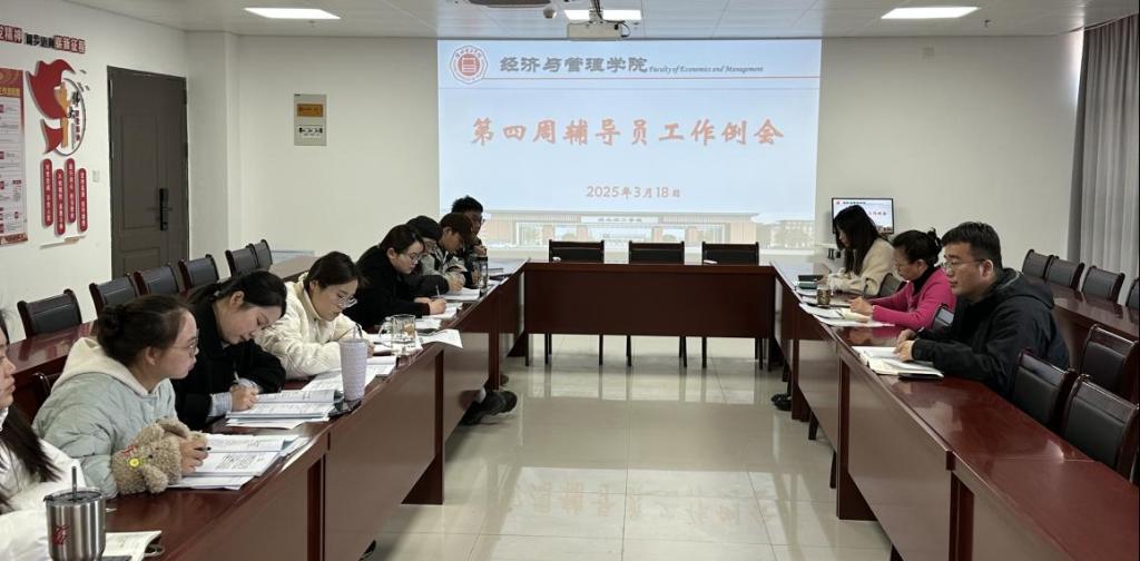 2025年3月18日,bat365在线中国官网登录入口在行政楼725会议室召开了本学期开学第四周的学生管理工作例会。学院书记助理员禹辛、团总支书记王绎程及全体辅导员参会,会议由院长吴玲主持。