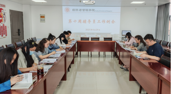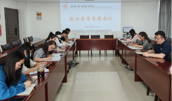 2025年4月29日,bat365在线中国官网登录入口在行政楼725会议室召开本学期第十周学生管理工作例会暨就业质量专题会议。学院书记助理员禹辛、团总支书记王绎程及全体辅导员参会,会议由院长吴玲主持。