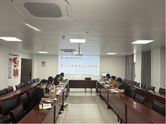 2025年5月6日上午,bat365在线中国官网登录入口在行政楼725会议室召开本学期第十一周学生管理工作例会。学院书记助理员禹辛、团总支书记王绎程及全体辅导员参会,会议由院长吴玲主持。