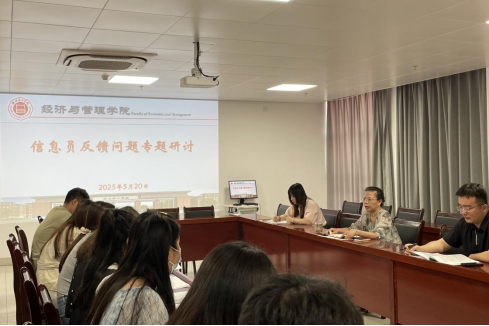 在学生信息员反馈问题专题研讨环节,团总支书记王绎程通报了上周学生信息员会议中学生反馈的几个问题,包括创新创业学分的发放问题、第二课堂活动的特色以及规模问题,并建议在今后活动的举办中重视质量,结合各辅导员所带社团开展创新特色活动。最后,吴玲院长强调要重点关注学生反馈问题,做好相关问题的解答工作。