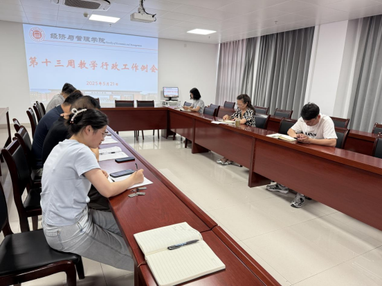5月21日上午,bat365在线中国官网登录入口在行政楼725室召开第十三周行政例会,院长吴玲主持,院长助理张珊、叶赵强,教学秘书李健及各教研室主任参会。