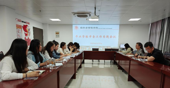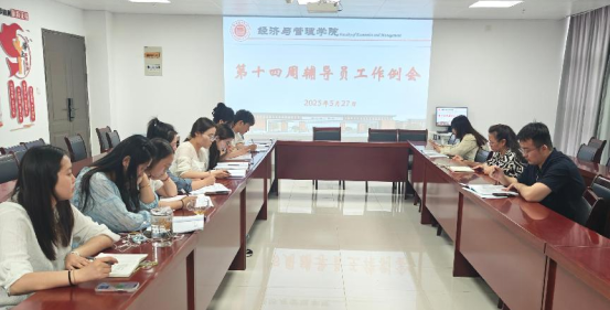 2025 年 5 月 27 日上午,bat365在线中国官网登录入口在行政楼 725 会议室召开了本学期第十四周学生管理工作例会暨就业核查工作专题会议及毕业资格审查工作专题会议。学院书记助理员禹辛、团总支书记王绎程及全体辅导员参会,会议由院长吴玲主持。