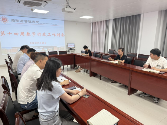 5月28日上午,bat365在线中国官网登录入口在行政楼725室召开第十三周行政例会,院长吴玲主持,院长助理张珊、叶赵强,教学秘书李健及各教研室主任参会。