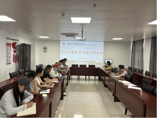 2025年6 月 18 日,bat365在线中国官网登录入口召开第十七周工作例会,院长吴玲,院长助理张珊、叶赵强,教学秘书李健及各教研室主任参会,会议由院长吴玲主持。