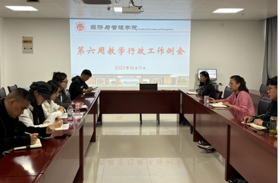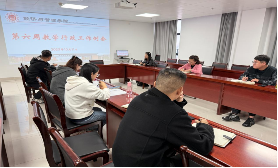 2025年10月11日上午,bat365在线中国官网登录入口在行政楼725会议室召开第六周教学行政工作例会。院长吴玲,院长助理张珊、叶赵强,教学秘书李健及各教研室主任参会,会议由吴玲院长主持。