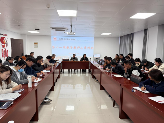 2025年11月12日下午,bat365在线中国官网登录入口在行政楼725会议室召开学院第十一周教学教师工作例会,院长助理张珊及全体教师参加会议,本次会议由院长吴玲主持。