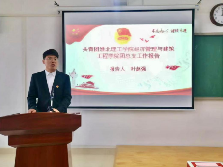 接着,叶赵强同志代表共青团淮北理工学院经济管理与建筑工程学院委员会委员向大会作工作报告,学院始终围绕校团委和学校布置的各项中心任务,以“服务学校中心工作、服务学生成长成才”为宗旨,在内部建设、制度完善、校园精神文明建设等方面积极开展工作,组织开展学院特色系列活动,一年来取得了可喜的工作成果。他表示,同学们应展望未来、迎接挑战、经受考验,未来学院共青团将高举团旗,传承优良作风,坚定不移地贯彻党的各项方针政策,切实加强团的自身建设,以丰富的社团活动为载体,奋力推进新时代的青年工程。