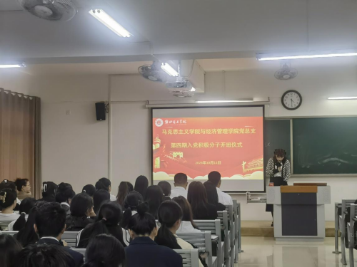 在开班仪式上,经济学学生支部书记员禹辛为本期入党积极分子培训班学员进行动员讲话,她对本期培训班的工作安排、目的、考核内容、方式以及标准等方面向学员们进行了详细的介绍,着重强调了入党积极分子要端正学习态度,正确认识到参加入党积极分子培训的重要意义,珍惜这次培训机会,要在思想和行动上向党组织积极靠拢,用心体会共产党的思想,认真完成培训课程任务。