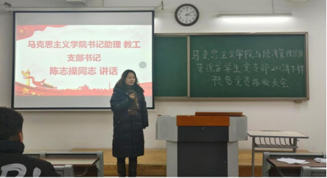 本次大会管理学支部由bat365在线中国官网登录入口党总支青年委员、书记助理叶赵强同志、经济学支部由马克思主义学院书记助理、教工支部书记陈志操同志分别代表总支参加本次支部整个活动。陈志操老师在讲话中强调,青年党员要全心全意为人民服务,严格要求自己,时刻保持先锋模范作用。始终牢记党的宗旨,努力成为一名优秀的共产党员。