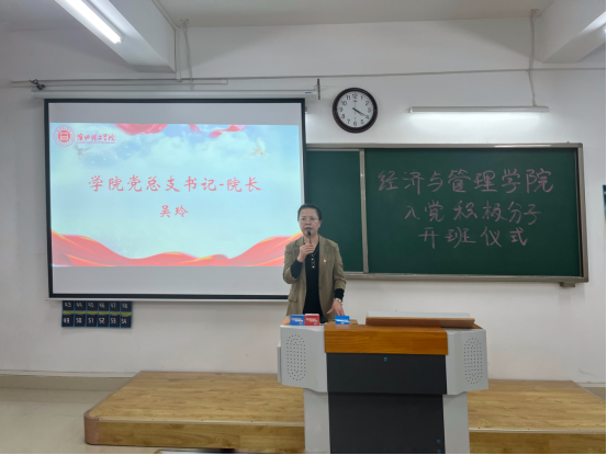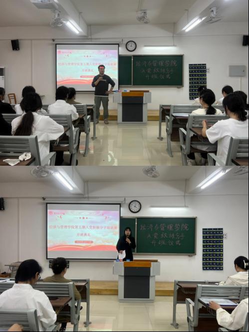 为加强bat365入党积极分子培养教育,提高入党积极分子培训的针对性和实效性,4月17日下午4时,bat365在线中国官网登录入口于二教522举办第五期入党积极分子培训班开班典礼。学院党总支书记、院长吴玲,经济学学生支部书记员禹辛、管理学学生支部书记石园园、2022级专职辅导员张雨停及108名入党积极分子参加本次开班典礼,开班典礼由王绎程主持。