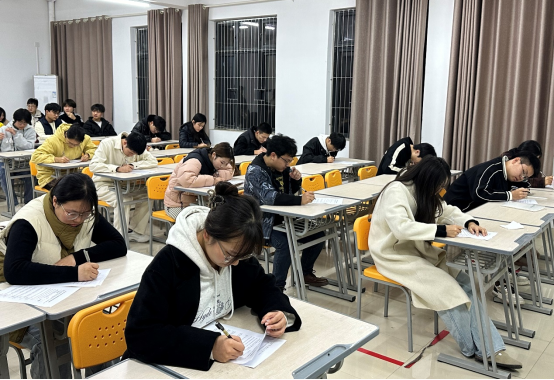 大赛设置预赛、决赛两部分。预赛为笔试环节,同学们在二教316整齐就座,桌上摆放着试卷、答题纸和笔,严阵以待。随着时间的推移,同学们逐渐完成试卷,最终根据笔试成绩选出9组队伍进入决赛。
