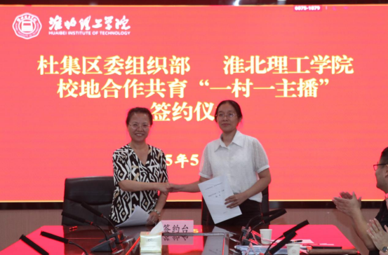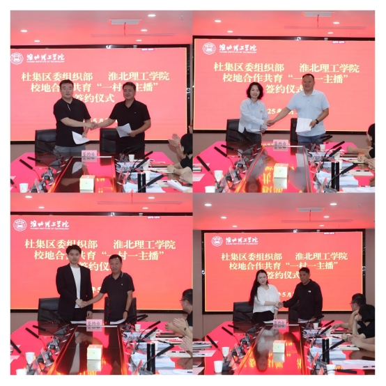 为落实《乡村全面振兴规划(2024-2027 年)》,完善乡村人才培养体系,推动淮北理工学院与杜集区校地协同创新。5月27日下午,淮北理工学院与杜集区校地合作共育“一村一主播” 项目评审会暨签约仪式在综合实训楼814会议室隆重举行。杜集区委组织部、宣传部、团杜集区委、区商务局、有关镇(街道)及试点村负责同志组成项目的评审组;淮北理工学院副校长汪建利、相关职能部门的负责人、申报项目团队全体人员参加本次活动。