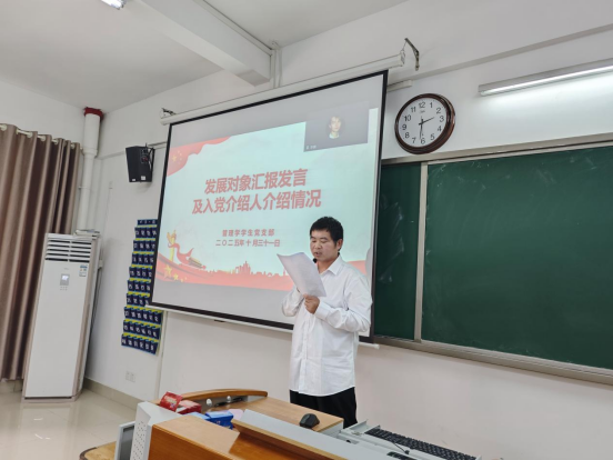 大会第一项,发展对象王星星等三位同志向党组织汇报自身情况。他们详细阐述了对党的认识、入党动机、个人履历家庭及主要社会关系等情况,表达了自己志愿加入中国共产党的坚定信念和强烈愿望,展现了接受党组织考验的真诚态度。