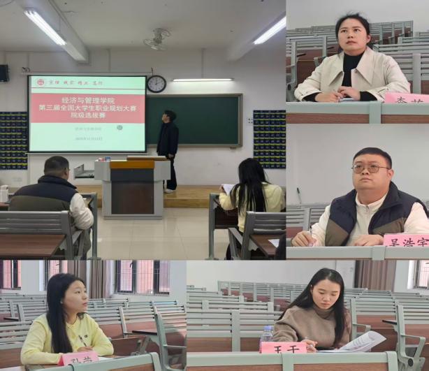 评委老师从职业规划的可行性、科学性、创新性及现场表现对选手进行综合点评,针对目标设定、路径规划等方面提出专业建议,按评分标准进行评分。最终评选出耿娜娜、苏晶晶、周佳欣等十位同学在院级初赛中脱颖而出,获得参加校级比赛的机会。