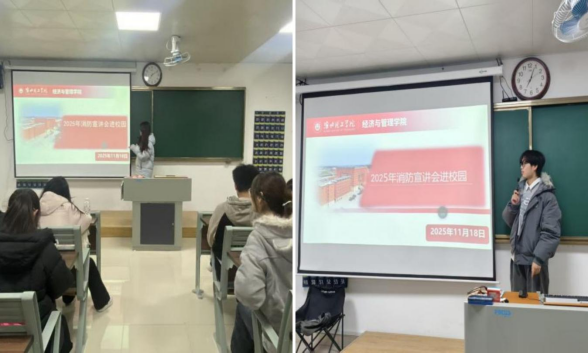 11月18日晚自习期间,2025级全体新生(含专升本班级)在固定教室参与消防安全主题宣讲活动。学院学生会成员,结合校园常见场景,讲解火灾核心知识。他们重点剖析了电器使用不当、违规用火等校园火灾主要成因,明确了宿舍大功率电器使用、教室易燃物品存放等消防安全禁忌。