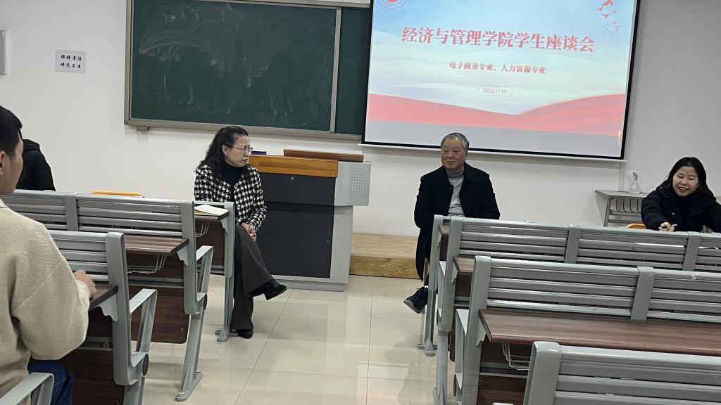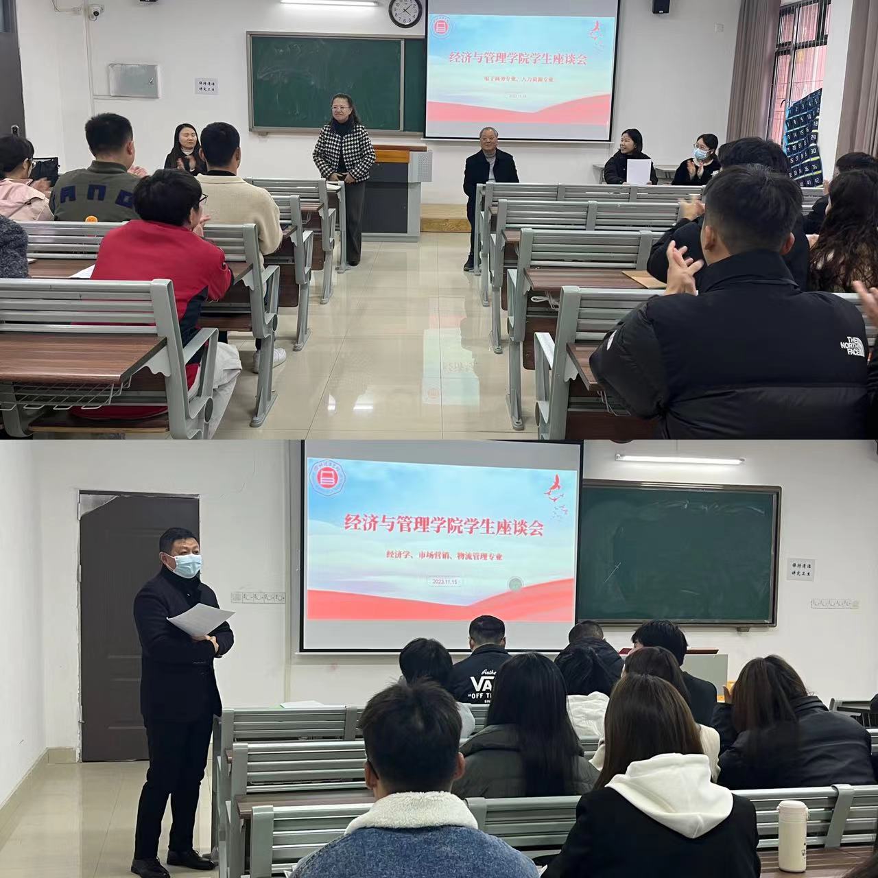 2023年11月15日下午,根据学院的计划,经济与管理学院如期召开了期中学生座谈会。座谈会根据不同专业划分为两个会场,参会人员包括党委副书记、副校长汪建利、bat365在线中国官网登录入口院长吴玲、各教研室主任,以及学院各级各班的班长和学习委员。会议由院长助理张珊和秦品德分别主持。