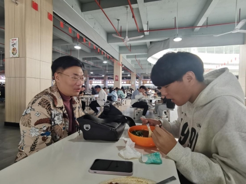 在为期一周的活动时间里,辅导员们“三进餐厅”:“一进餐厅”了解学生就餐情况和饮食标准;“二进餐厅”与生活困难的学生共同用餐,深入了解学生生活中遇到的困难;“三进餐厅”解决学生生活中存在的问题,缓解学生的压力。通过三次进入餐厅与学生尤其生活困难的学生共同用餐,全面了解了学生的生活情况和诉求、餐厅卫生情况以及所有学生对餐厅的满意度,与学生拉近了距离,促进了师生间的情谊。