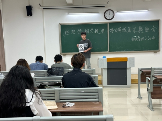 为响应《教育部办公厅卫⽣部办公厅关于进⼀步加强学校控烟⼯作的意见》,号召⼴⼤师⽣⾃觉远离烟草,树⽴和展现bat365师⽣良好的精神⾯貌,养成科学健康的⽣活习惯,创造⽂明、洁净、优美的校园环境。bat365于4⽉27-5月7日开展了以“创建无烟校园、共建文明学校”为主题的禁烟活动,29个班级参与本次活动。