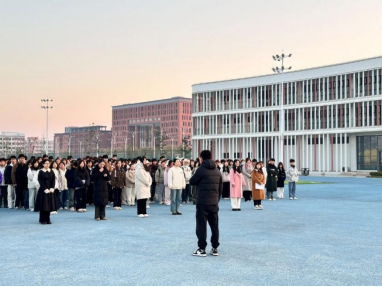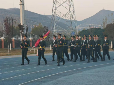 初晨,阳光洒在学院操场上,师生们整齐列队,庄严肃立。国旗护卫队迈着铿锵有力的步伐,护卫着鲜艳的五星红旗,缓缓走向升旗台。随着激昂的国歌奏响,五星红旗冉冉升起,迎风飘扬。全体师生凝视着国旗,齐唱国歌,心中充满了对祖国的热爱与敬意,那一抹鲜艳的红色深深烙印在每个人心间,彰显着大家赤诚的爱国情怀。