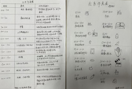 5月10日-14日:行动进班级-“红色作息,学风接力”。各班级辅导员三进班级带领学生围绕“革命前辈作息表”进行学习,制定个人专属学习计划作息表,争做时间管理的时代新人。