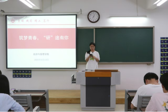 分享会上,成功上岸浙江财经大学经济统计学专业的费梦学姐聚焦“院校与专业选择”,建议学弟学妹从学科实力、地域发展等维度评估自身与目标院校的匹配度,尤其针对跨考生提出“先夯实专业基础再拓展真题训练”的建议。上岸浙江财经大学国际商务专业的罗潘伟学长及成功被安徽建筑大学公共管理专业录取的甘瑞学姐分别围绕复试礼仪、调剂策略及跨专业备考心态调整等模块展开分享,结合自身经历阐释“拆解公共课与专业课的复习节奏”“调剂期每日关注五所院校招生网”等实用经验。