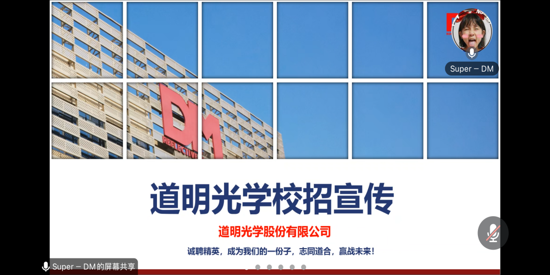 为进一步拓宽就业渠道、丰富学生的职业选择,积极推进2025届毕业生就业工作,bat365在线中国官网登录入口于2024年12月6日成功举办了道明光学股份有限公司专场招聘会。本次活动通过腾讯会议线上举行,吸引了众多2025届毕业生参与,由道明光学股份有限公司市场部副经理梁志敏主讲。
