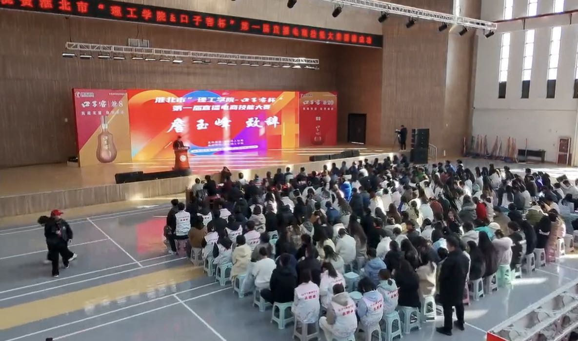 2024年12月15日下午14时,备受瞩目的淮北市“理工学院-口子窖杯”第一届直播电商技能大赛决赛在淮北理工学院拉开帷幕。本次大赛由淮北市人社局主办,淮北理工学院承办,安徽口子酒业股份有限公司的独家冠名赞助。淮北理工学院校长杨兵,党委书记、督导专员朱德顺,淮北市人力资源和社会保障局副局长张华,安徽口子酒业股份有限公司副总经理詹玉峰,顺达集团副总裁石明好,淮北顺达商贸有限公司常务副总经理张盛,杜集区委组织部副部长王君以及杜集区各乡镇街道的相关领导参加活动、观摩比赛。大赛选自行业、企业和学校的专家组成评审团和监赛团,为比赛增添了浓厚的权威性和专业性。