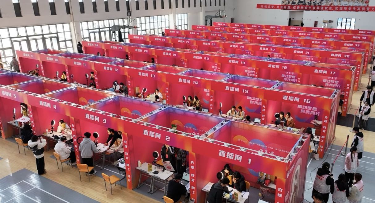 本次大赛设有理论考试、初赛、决赛三个比赛环节,56支团队成功晋级,进入决赛阶段。下午两点半56个直播间同时开播,主播们热情洋溢,耐心细致地讲解商品,团队成员默契配合,迅速对接商品并与观众互动,直播间内精彩纷呈,带货技巧与才艺表演完美结合。本次决赛采用图片直播形式在视频号和抖音同步直播,累积播放量达到30万余次。