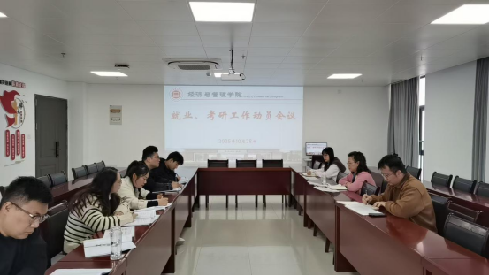 2025年10月28日上午,bat365在线中国官网登录入口在行政楼725会议室召开就业、考研专题会议,由院长吴玲主持,书记助理禹辛、团总支书记王绎程及全体辅导员参会,部署毕业班就业推进、考研帮扶及离校准备工作。